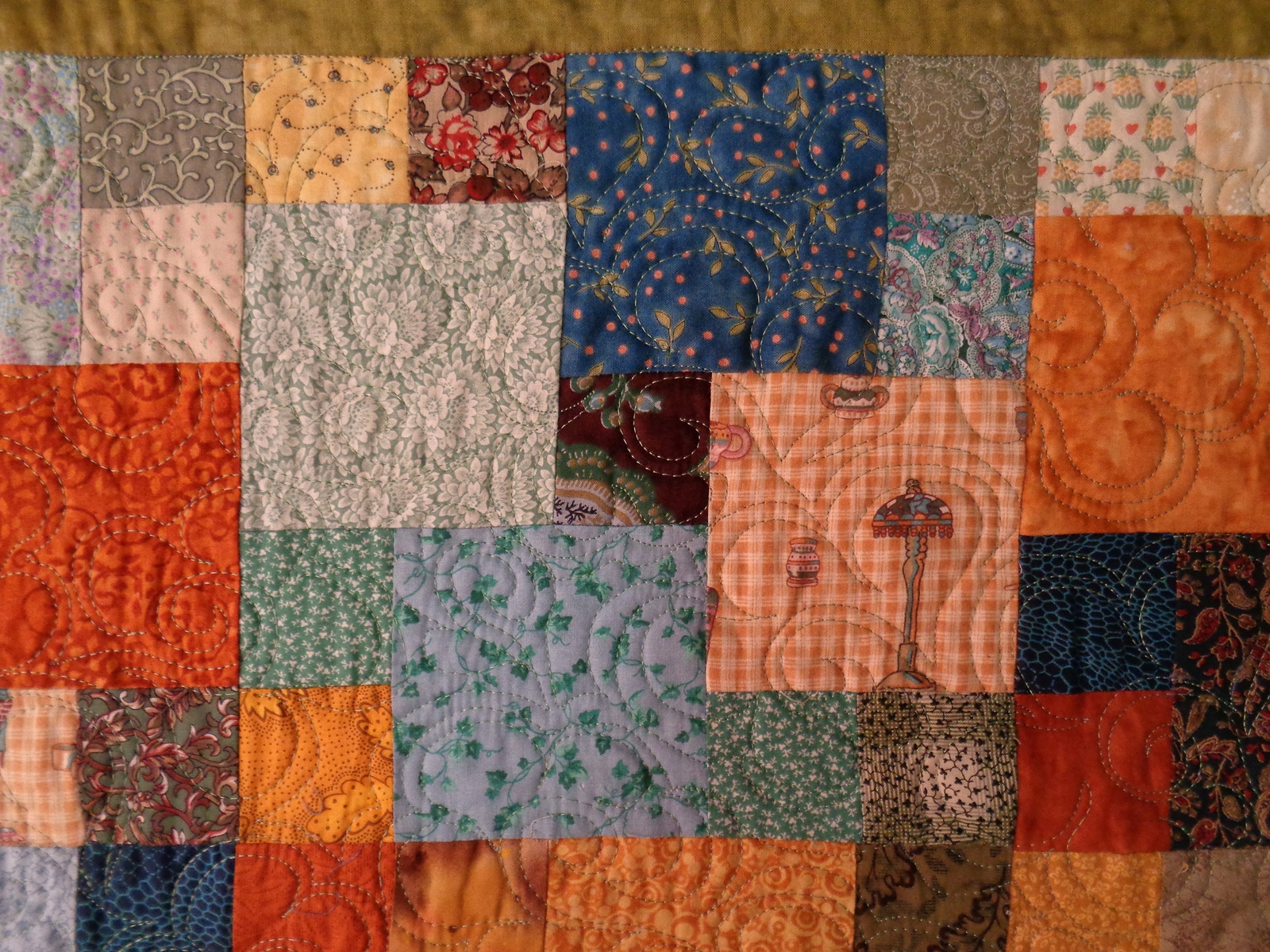 Elkészítettem a foltszendvicset, a hátlaphoz ugyanazt az anyagot használtam, és pamut/poliészer kesztyűflízt . A tűzéshez hímzőcérnát tettem felsőszálnak, alsószálként 40-es poliészer cérnát .